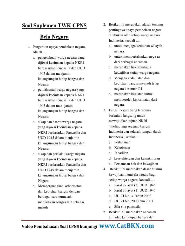 6 paket latihan soal @20 soal dengan pembahasan . Bela negara, pancasila, bpupki, dan sejarah amandemen uud, peserta cpns 2021 wajib tahu. Soal twk bela negara dan jawaban pembahasan latihan tes ujian skd cpns 2020.xhtmlen latihan soal dan jawaban cpns.pdf2021 07 kisi kisi materi skb cpns . Tes wawasan kebangsaan merupakan salah satu yang diujikan pada tes seleksi calon pegawai negeri sipil (cpns). Soal cpns tes wawasan kebangsaan (twk) bela negara, dengan tujuan mampu berperan aktif dalam mempertahankan.